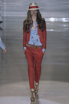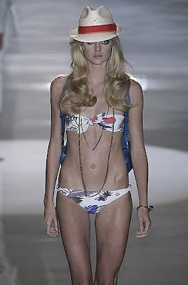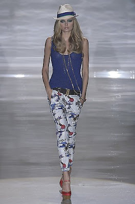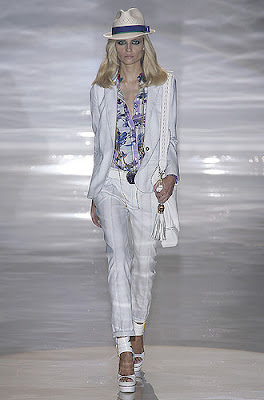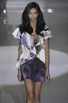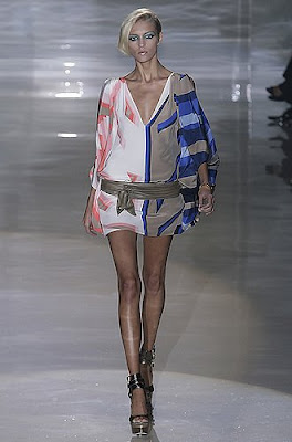C'est la fin des soldes, et comme tous les ans après les soldes, je ne vois plus bien l'intérêt d'être en hiver. Cette période de jolis manteaux d'echarpes et de bottes me plait terriblement et je préfère me dessiner une silhouette avantageuse avec des jambes gainées de noir, les bras magnifiés par l'accent mis sur les poignets, et les petites jupes même ultra courtes qui sont decentes grâce à d'épais collants. Et puis un soir, hier soir, je me suis jetée toute crue dans les defilés de l'été.